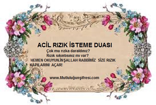 ACİL RIZIK İSTEME DUASI October 16, 2017 Original Image size: 500 × 336 ACİL RIZIK İSTEME DUASI ACİL RIZIK İSTEME DUASI Acilen rızık elde etmek için okunacak Dua
