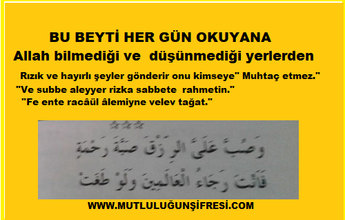 BU BEYTİ HER GÜN OKUYANA ALLAH BİLMEDİĞİ YERDEN RIZIK GÖNDERİR December 15, 2017 Original Image size: 500 × 320 BU BEYTİ HER GÜN OKUYANA ALLAH BİLMEDİĞİ YERDEN RIZIK GÖNDERİR BU BEYTİ HER GÜN OKUYANA ALLAH BİLMEDİĞİ YERDEN RIZIK GÖNDERİR Bu Beyti okuyana Allah” Bilmediği ve düşünmediği yerden rızık ihsan eder.”