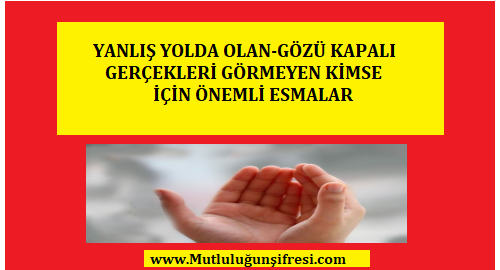 YANLIŞ YOLDA OLUP GERÇEKLERİ GÖRMEYEN KİMSE İÇİN ESMALAR October 26, 2023 Original Image size: 500 × 270 YANLIŞ YOLDA OLUP GERÇEKLERİ GÖRMEYEN KİMSE İÇİN ESMALAR YANLIŞ YOLDA OLUP GERÇEKLERİ GÖRMEYEN KİMSE İÇİN ESMALAR Gerçekleri göremeyen kimse için okunacak Esmalar
