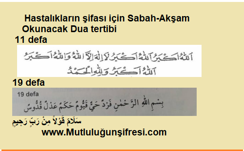 Hastalıkların şifası için sabah akşam 19 defa okunan dua ve Ayet May 2, 2020 Original Image size: 500 × 310 Hastalıkların şifası için sabah akşam 19 defa okunan dua ve Ayet Hastalıkların şifası için sabah akşam 19 defa okunan dua ve Ayet Hastalıklardan şifa bulmak için Sabah-Akşam 19 defa okunacak Dua