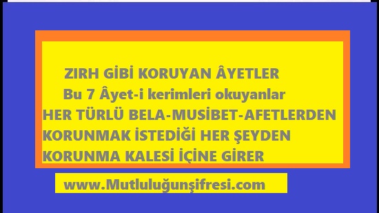 7 AYET İLE HER TÜRLÜ BELA VE MUSİBETLEREN KORUNMA December 12, 2020 Original Image size: 550 × 309 7 AYET İLE HER TÜRLÜ BELA VE MUSİBETLEREN KORUNMA 7 AYET İLE HER TÜRLÜ BELA VE MUSİBETLEREN KORUNMA HER TÜRLÜ BELA,MUSİBET VE KORKULARA KARŞI KALKAN ÂYETLER