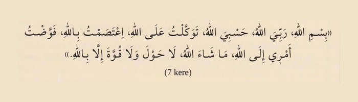 “Bismillâh, rabbiyallâh,i’ tasamtübillâh, fevvadtü emrî ilallâh, mâşâallâh, lâ kuvvete illâ billâh”dedi.