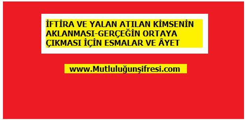 İFTİRA VE YALANDAN AKLANMAK İÇİN ESMALAR VE AYET May 7, 2023 Original Image size: 500 × 244 İFTİRA VE YALANDAN AKLANMAK İÇİN ESMALAR VE AYET İFTİRA VE YALANDAN AKLANMAK İÇİN ESMALAR VE AYET İftira ve Yalan Karşısında kalanlar”Aklanmak için” Esmalar ve Ayet-i Kerim
