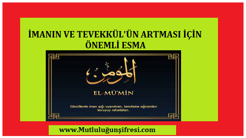 İMANIN VE TEVEKKÜLÜN GÜÇLENMESİ İÇİN ESMA October 25, 2023 Original Image size: 500 × 280 İMANIN VE TEVEKKÜLÜN GÜÇLENMESİ İÇİN ESMA İMANIN VE TEVEKKÜLÜN GÜÇLENMESİ İÇİN ESMA İman ve Tevvekül’ün Güçlenmesi İçin Her Gün Okunacak Esma