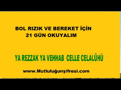 Ya rezzak ya vehhab 21 gün rızık ve bereket September 20, 2020 Original Image size: 480 × 360 Ya rezzak ya vehhab 21 gün rızık ve bereket Ya rezzak ya vehhab 21 gün rızık ve bereket Kazancın bereketi ve bol rızık için 21 gün” Ya Rezzak ve Vehhab c.c”
