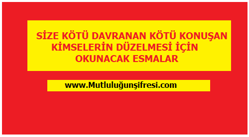 SİZE KÖTÜ DAVRANA KÖTÜ KONUŞAN BİRİLERİNİN DÜZELMESİ İÇİN DUA TERTİBİ November 26, 2022 Original Image size: 500 × 276 SİZE KÖTÜ DAVRANA KÖTÜ KONUŞAN BİRİLERİNİN DÜZELMESİ İÇİN DUA TERTİBİ SİZE KÖTÜ DAVRANA KÖTÜ KONUŞAN BİRİLERİNİN DÜZELMESİ İÇİN DUA TERTİBİ Kendisine kötü davranıp kötü konuşan kişinin düzelmesi için Dua tertibi