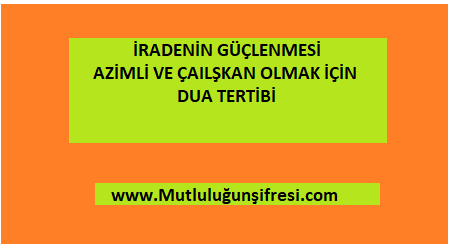 İRADENİN GÜÇLENMESİ AZİMLİ VE ÇALIŞKAN OLMAK İÇİN DUA TERTİBİ July 24, 2023 Original Image size: 450 × 248 İRADENİN GÜÇLENMESİ AZİMLİ VE ÇALIŞKAN OLMAK İÇİN DUA TERTİBİ İRADENİN GÜÇLENMESİ AZİMLİ VE ÇALIŞKAN OLMAK İÇİN DUA TERTİBİ Maddi ve manevi her konuda iradenin güçlenmesi için Dua tertibi