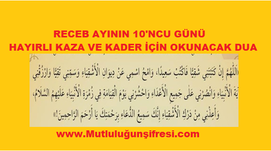 RECEB AYININ 10 NCU GÜNÜ HAYIRLI KADER İÇİN DUA March 17, 2019 Original Image size: 550 × 307 RECEB AYININ 10 NCU GÜNÜ HAYIRLI KADER İÇİN DUA RECEB AYININ 10 NCU GÜNÜ HAYIRLI KADER İÇİN DUA RECEB AYININ 10’NCU GÜNÜ HAYIRLI KAZA VE KADER İÇİN OKUNACAK DUA