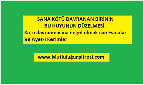 SANA KÖTÜ DAVRANAN BİRİNİN HUYUNUN DÜZELMESİ İÇİN ESMALAR VE AYETLER May 30, 2022 Original Image size: 492 × 290 SANA KÖTÜ DAVRANAN BİRİNİN HUYUNUN DÜZELMESİ İÇİN ESMALAR VE AYETLER SANA KÖTÜ DAVRANAN BİRİNİN HUYUNUN DÜZELMESİ İÇİN ESMALAR VE AYETLER Sana kötü Davranan Birinin Bu Huyunun Düzelmesi için Esmalar ve Ayetler