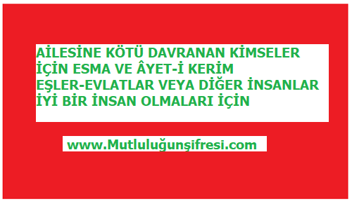 AİLESİNE KÖTÜ DAVRANAN KİMSELER İÇİN ESMA VE AYET-İ KERİM September 6, 2022 Original Image size: 500 × 291 AİLESİNE KÖTÜ DAVRANAN KİMSELER İÇİN ESMA VE AYET-İ KERİM AİLESİNE KÖTÜ DAVRANAN KİMSELER İÇİN ESMA VE AYET-İ KERİM Sevdiklerimizin aile ve diğer insanlara iyi davranması için Esma ve Âyet-i Kerim