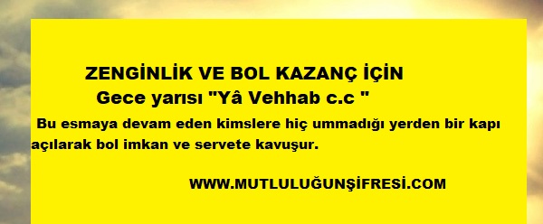 Zenginlik ve bol kazanç için gece yarısı ya vehhab August 26, 2018 Original Image size: 600 × 248 Zenginlik ve bol kazanç için gece yarısı ya vehhab Zenginlik ve bol kazanç için gece yarısı ya vehhab Zenginlik ve bol kazanç için ” Gece yarısı ” Yâ Vehhab c.c